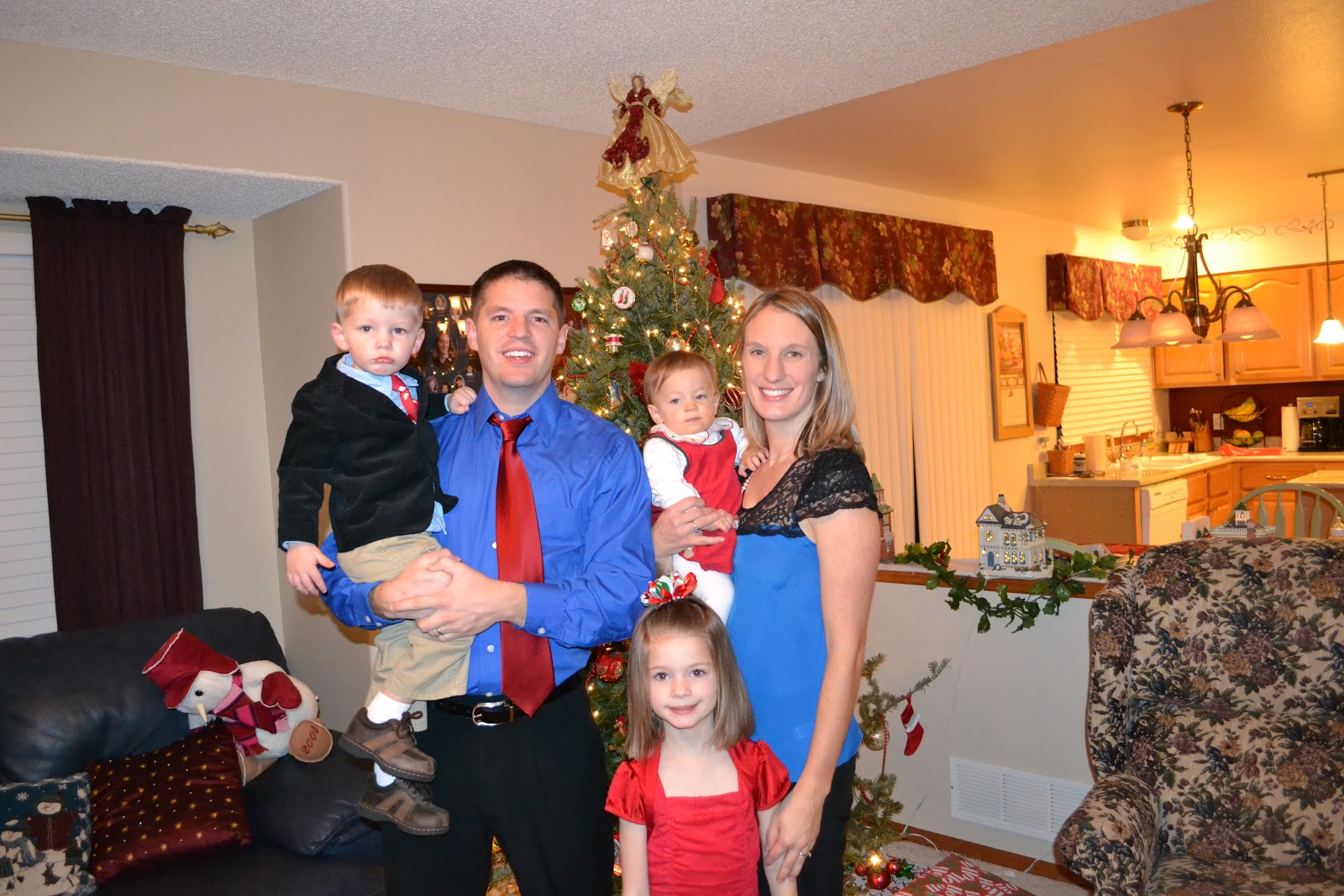 We had a great Christmas Eve with our families. We had our traditional dinner with my family and then went to church with Nate's. We got the kids in bed, a little later than normal, but Alyssa and Mason were both excited for Christmas morning. Mason woke up in the middle of the night with a fever and said his head and throat hurt, so Nate gave him some medicine and he slept until morning. Mason was excited in the morning and didn't seem too sick. He had a bit of a croupy cough, but he didn't cough much. He opened presents and played with his toys all morning. He started feeling worse around lunchtime, so we put him down hoping he'd wake up feeling better. I happened to go upstairs during his nap and heard him crying/ coughing. It was so quiet, but when I went in he was a little distressed and didn't seem like he could catch his breath. I am so glad I went up there.